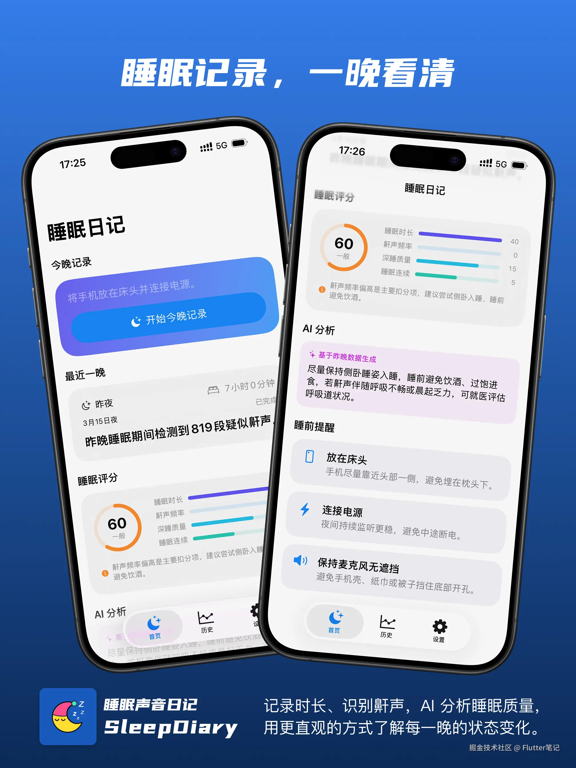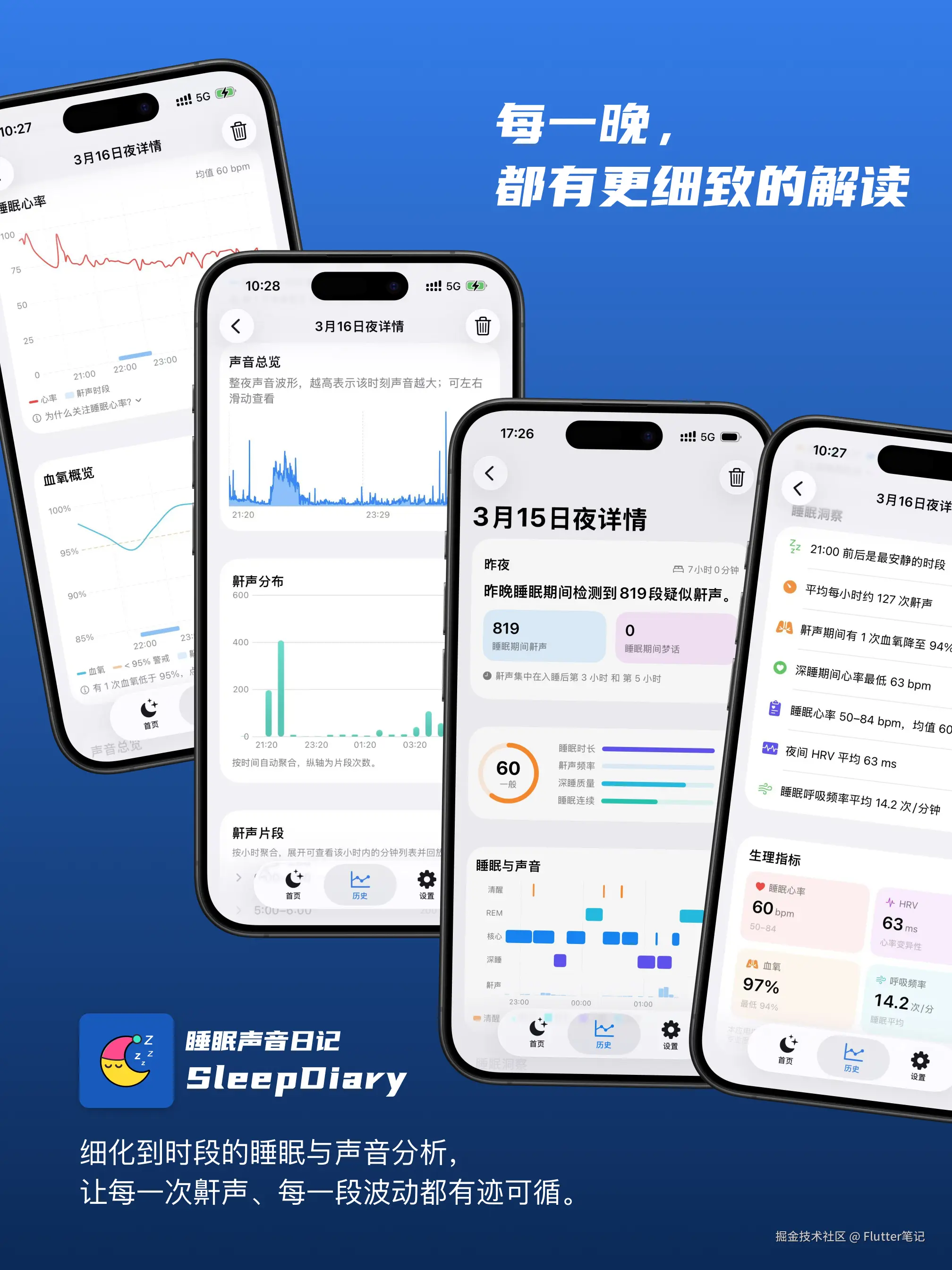 • 昨晚的评分、鼾声、时长一目了然
