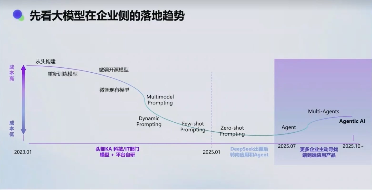 - 当前状态:不再关注模型本身,转向各种 Agent(营销 Agent、客服 Agent、数据 Agent 等)