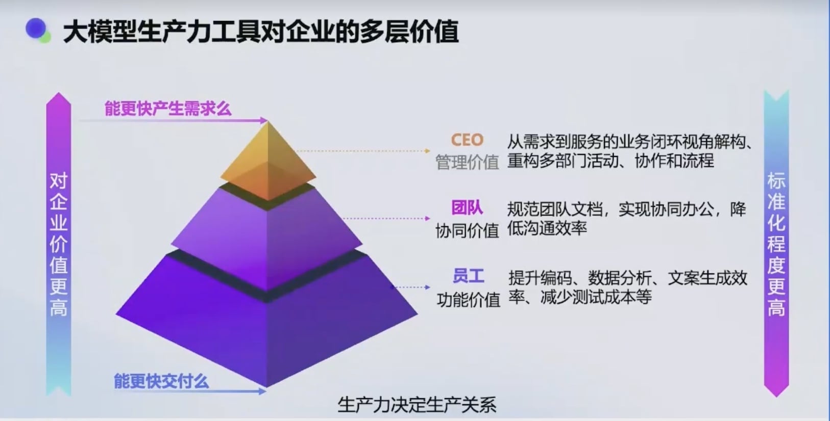 从下到上, AI 对企业的价值越高; 从上到下, 标准化程度越高