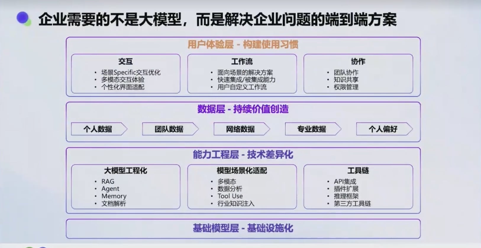 - 根本原因:企业需要的不是模型本身,而是场景化的价值和可量化的提升