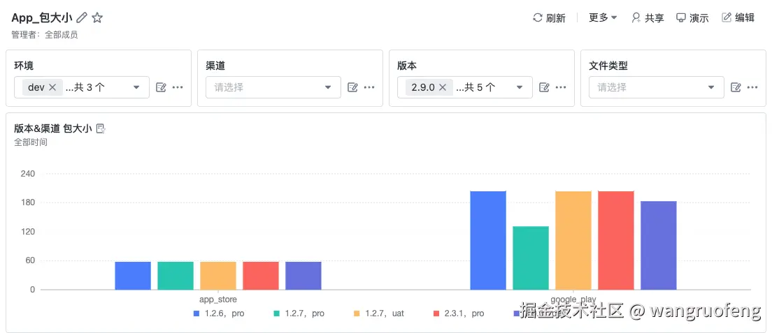 - Dashboard 展示:在神策平台配置版本趋势图、双端对比表、渠道差异图,直观呈现包大小变化。