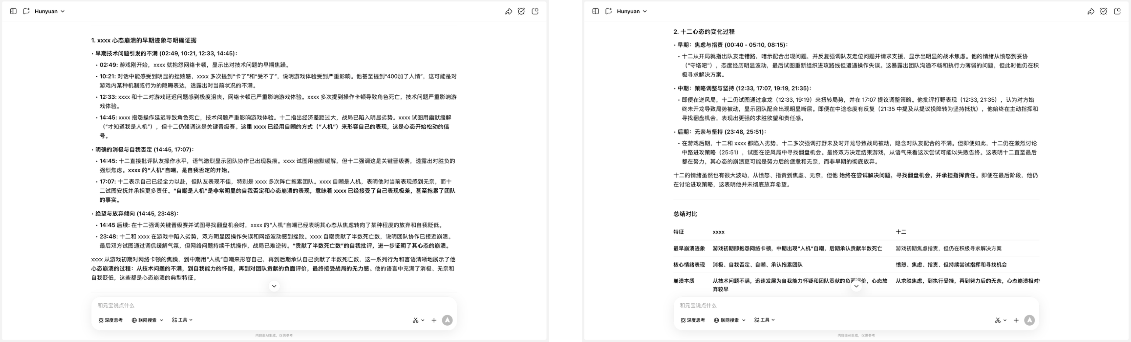 我们甚至可以直接问它,「帮我分析一下,这局谁的心态最先崩的?」然后元宝给我的回答是。