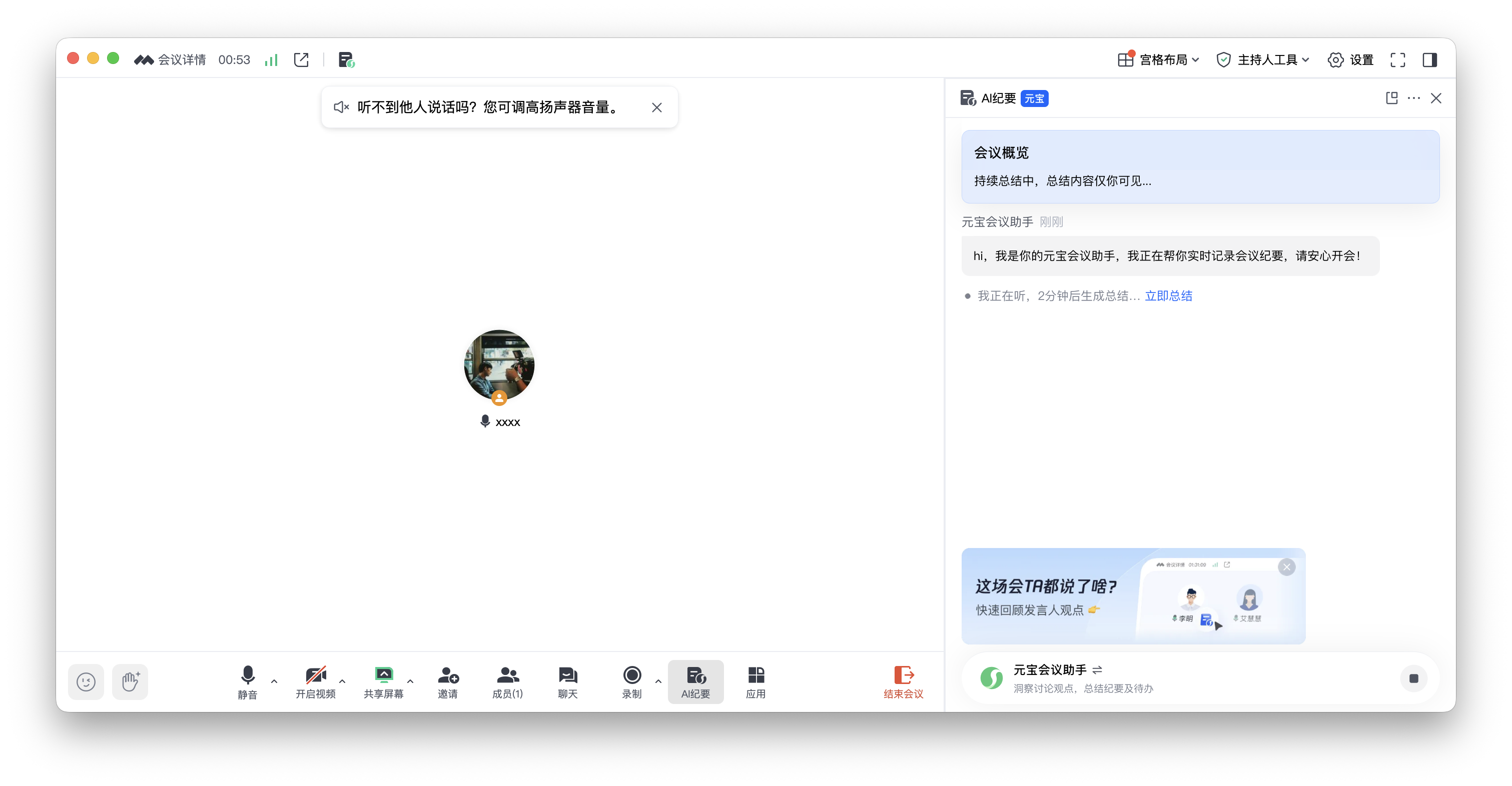 ▲ Hi,我是你的元宝会议助手,请安心开会