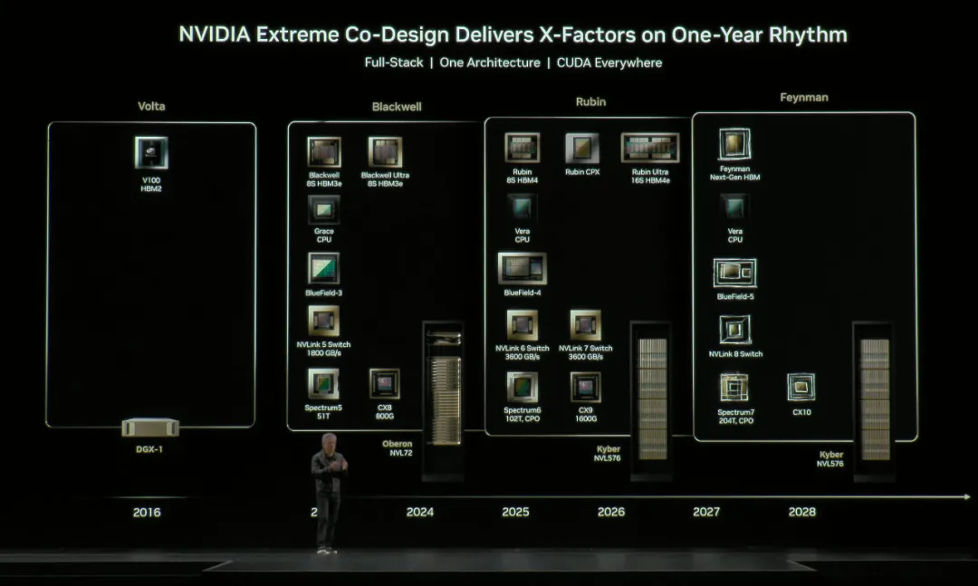 英伟达芯片与平台路线图,2016 至 2028 年节奏|图片来源:英伟达