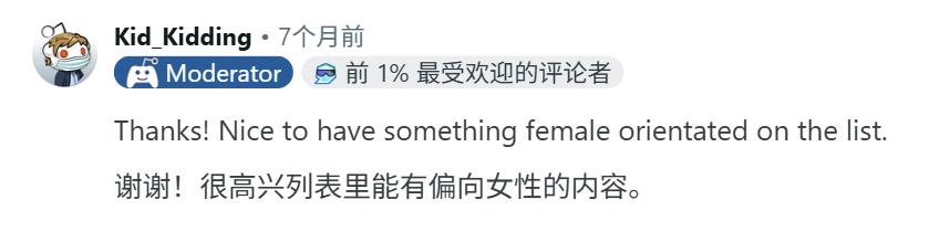 而且难得的我看到了一个正向评价,对方说“很高兴列表里能有偏向女性的内容。”