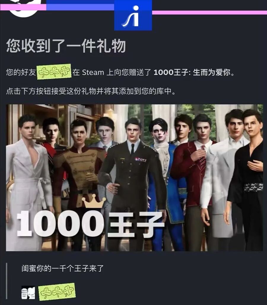 前几天我收到了一封Steam邮件,是朋友送我的一个游戏——《1000王子:生而为爱你》。
