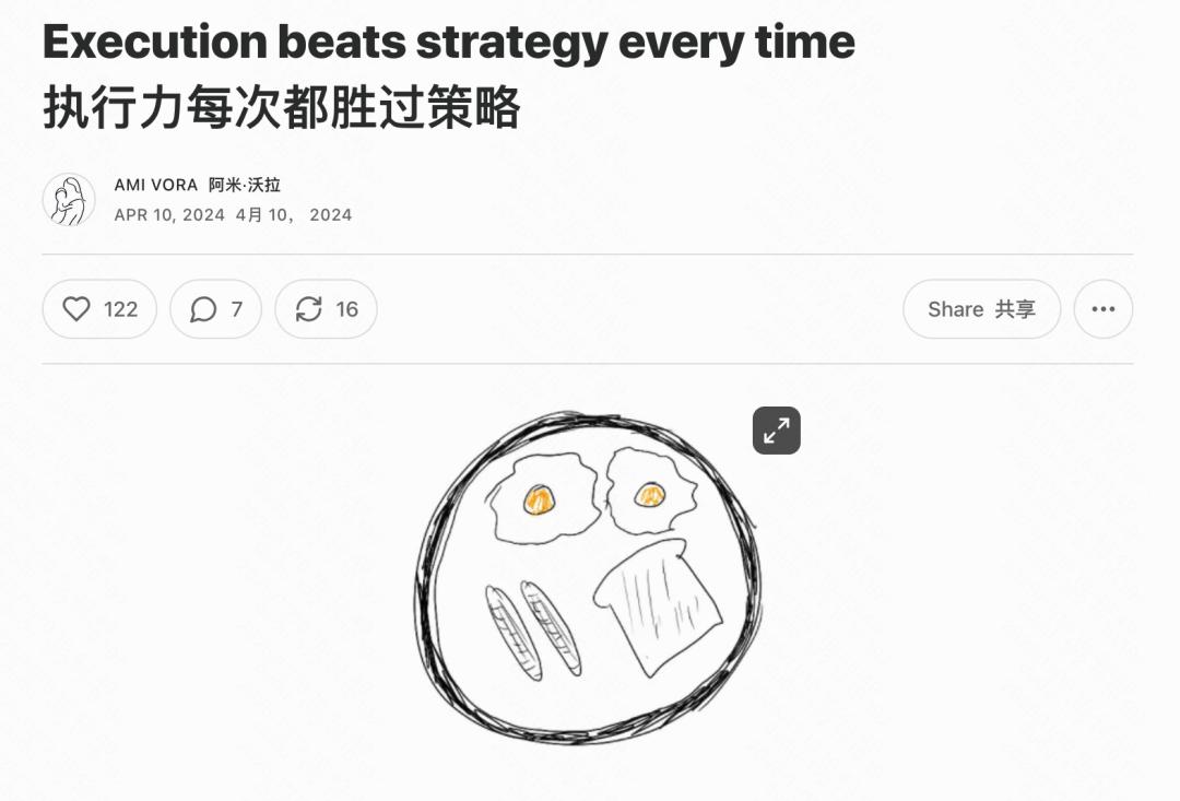 Ami:我在Meta学到最大的一课就是:即使战略完美,但执行差,你依然会输,而且最糟的是——你都不知道为什么会输。相反,一个一般的战略配上优秀的执行,你每天都能学习、迭代、修正。
