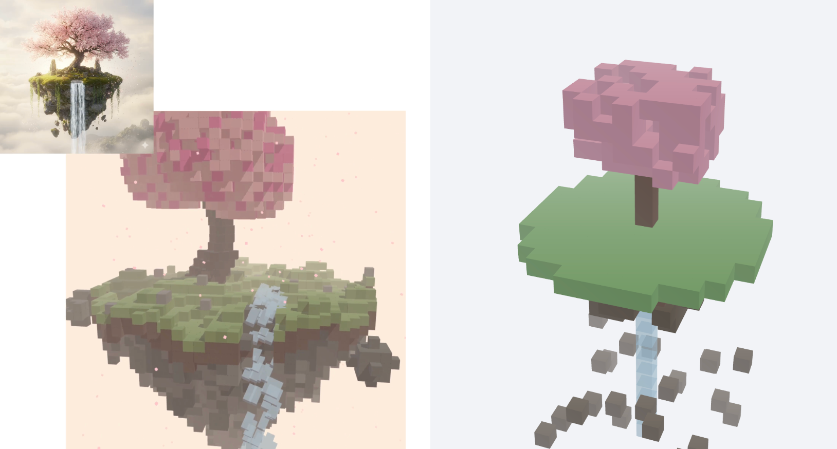 关于 3D 理解和推理能力,我们也用了 Ian Goodfellow 上次在 Gemini 3.0 Pro 发布之后使用的提示词,即上传一张图片,然后告诉模型根据这张图片,生成一个漂亮的体素艺术 Three.js 单页程序场景。