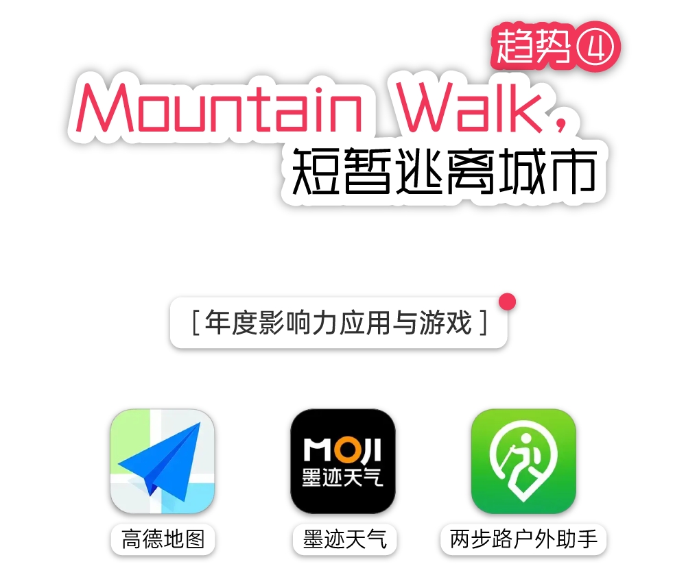 这场奔赴山野的集体出走中,年轻人暂时忘却了工作的烦恼、生活的压力,只专注于脚下的路和眼前的风景,而科技发展也让户外活动变得没那么高不可攀。如今,网上组队招募、最佳小众路线规划等帖子堪称保姆级Mountain Walk教学;导航类App即便山上无信号,也能清晰定位,带年轻人畅通无阻走出山野;气候类App不仅能够提供准确天气预报,更能将复杂的数据转化为直观的出行建议,比如增减衣物、预警潜在危险,帮助年轻人更好地安排“出逃”日程,享受纯粹的自然时光。