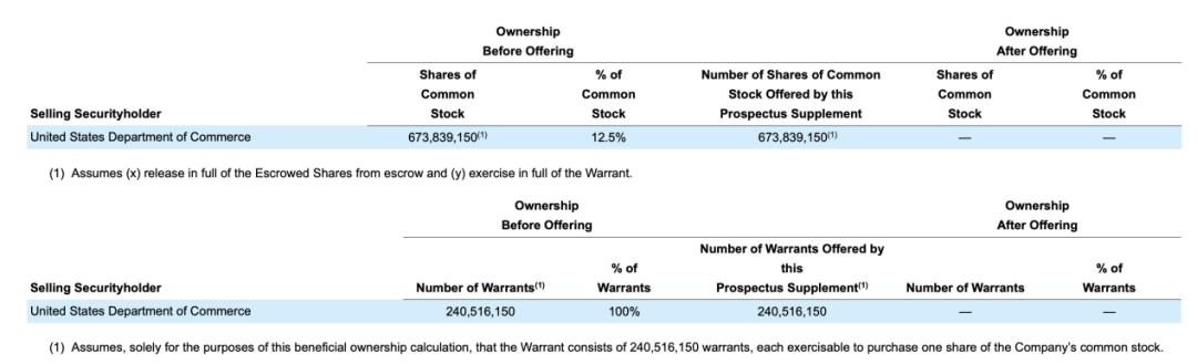 图:美国商务部对英特尔持股情况 资料来源:公司公告,36氪整理