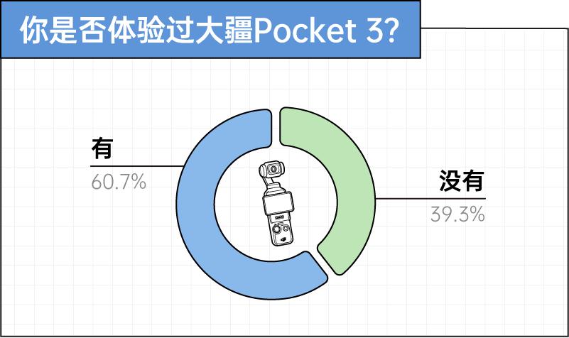 在我们的调查问卷中,有超过60%的人体验过大疆Pocket 3,吸引他们的前三大理由分别是:小巧易携带(72.5%)、防抖稳定(62.9%)、画质好(42.8%)。
