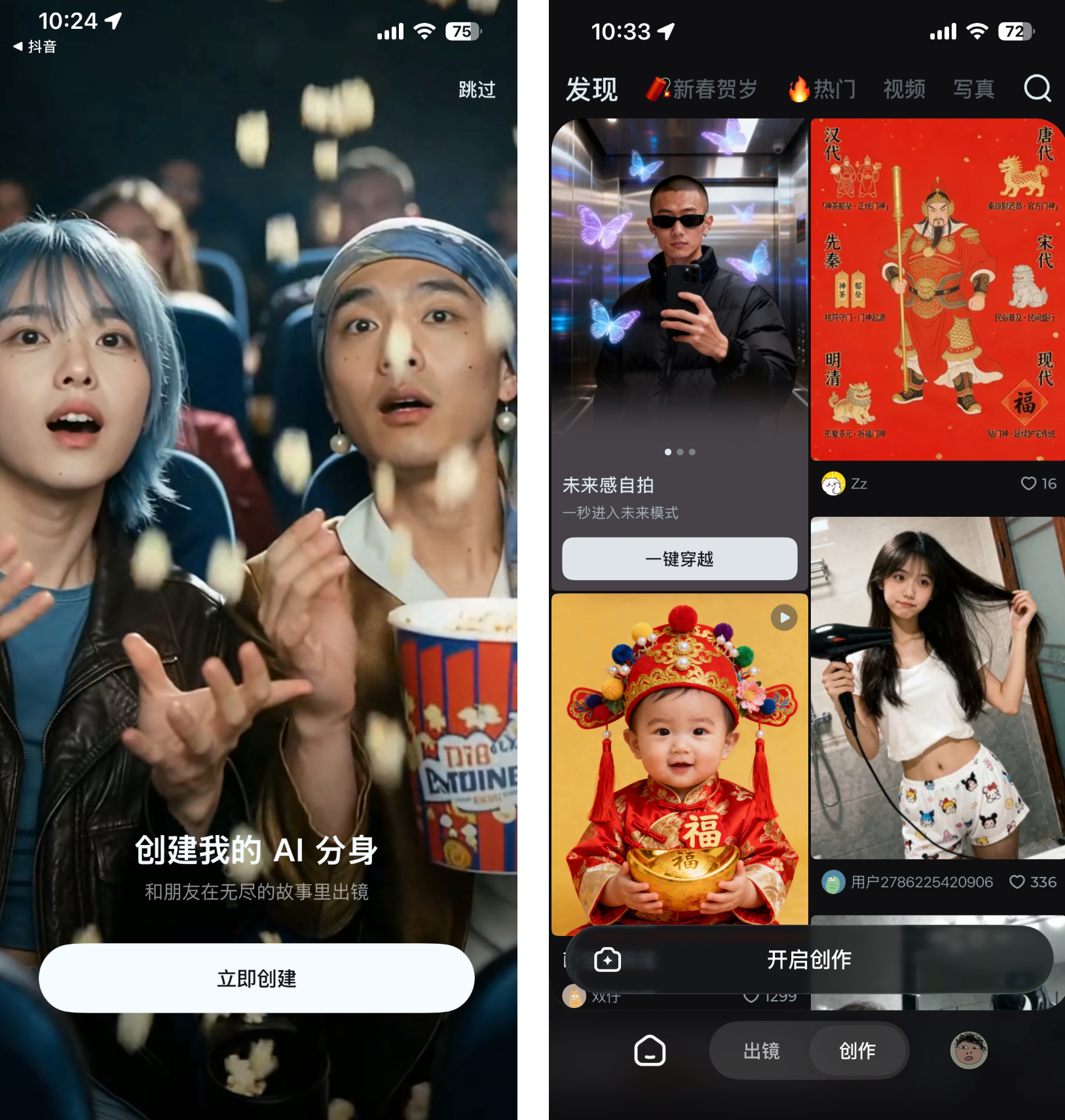 ▲即梦 AI APP 内出镜功能,在创建 AI 分身之后能创作真人视频