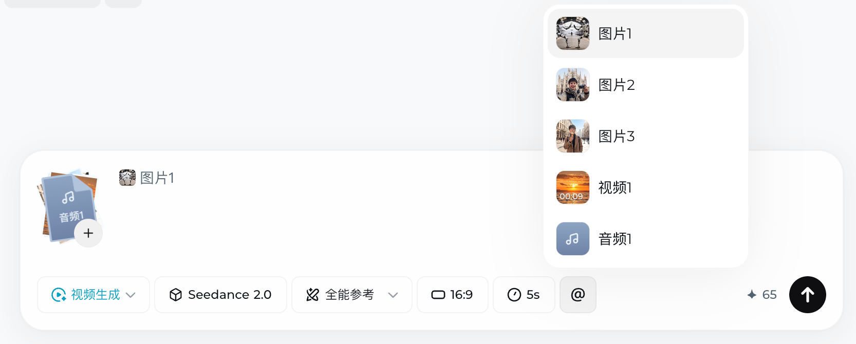 ▲ 也可以直接点击输入框下方的 @ 按钮来选择使用不同的素材文件