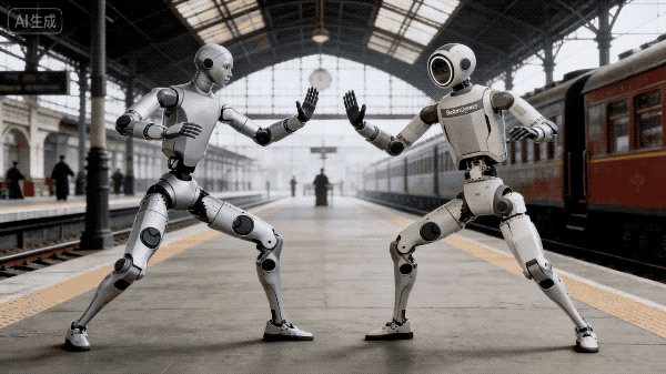 这里我们使用了 Seedance 2.0 使用手册内一段 10s 的打斗,然后告诉模型将视频中的两个人物动作,复制成我们上传的两个机器人。