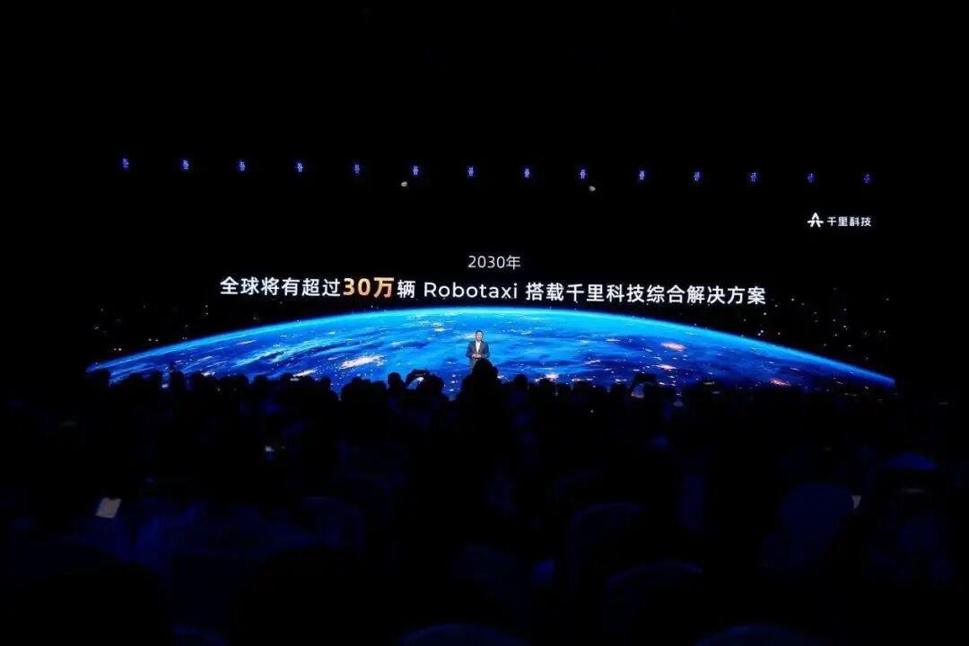 在发布会上,千里科技的Robotaxi业务也迎来了新进展:预计在2027年推出Robotaxi综合解决方案,2030年全球将有超过30万辆Robotaxi搭载千里科技综合解决方案。