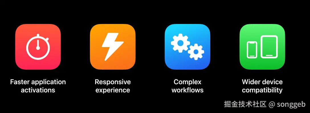 - Faster application activation,因为内存控制的好,所以app进入后台时不易被系统终止,重新激活回到前台时也更快