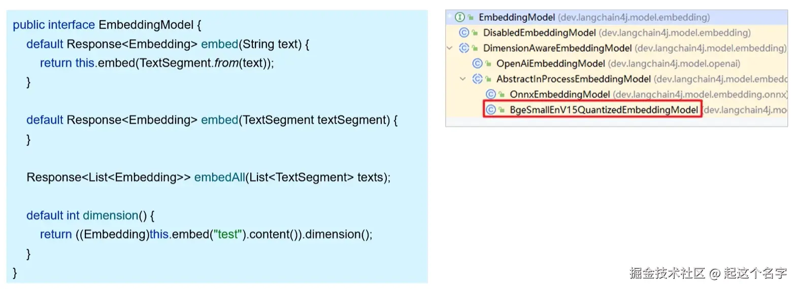 内置的向量模型可能不是那么强大,需要在application.yml中配置第三方更强大的向量模型 配置完成后 Langchain4j 会根据配置信息向容器中注入一个向量模型对象,我们只需要把该向量模型对象设置给EmbeddingStoreIngestorEmbeddingStoreContentRetriever即可。