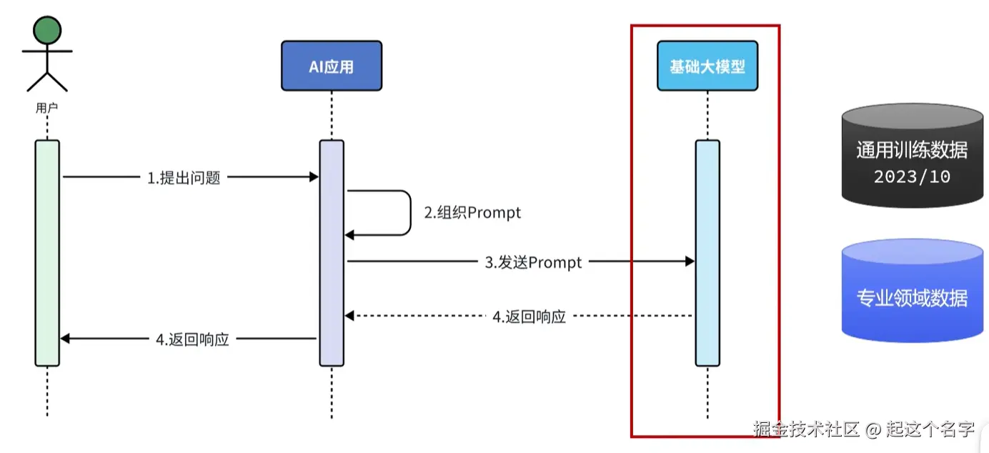 其中,2.3 组织Prompt、3.1 发送Prompt、3.2 生成结果、3.3 返回响应、4 返回响应的流程由 Langchain4j 来完成。