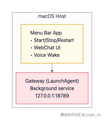 macOS 应用采用了不同的方法。它使用 Swift 编写,位于 apps/macos/ ,驻留在您的菜单栏中,提供网关生命周期管理——启动、停止、重启,只需指尖轻触。它包含语音唤醒功能,带有一键通话覆盖层,将 WebChat 嵌入原生浏览器视图,甚至可以通过 SSH 控制远程网关。
