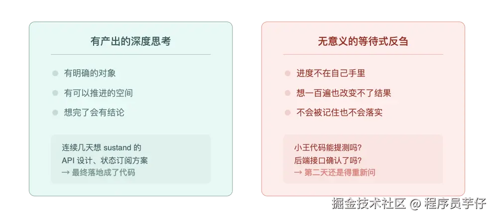 有创造性的深度思考 vs 无意义的等待式反刍——区分这两者,是我迈出的第一步。