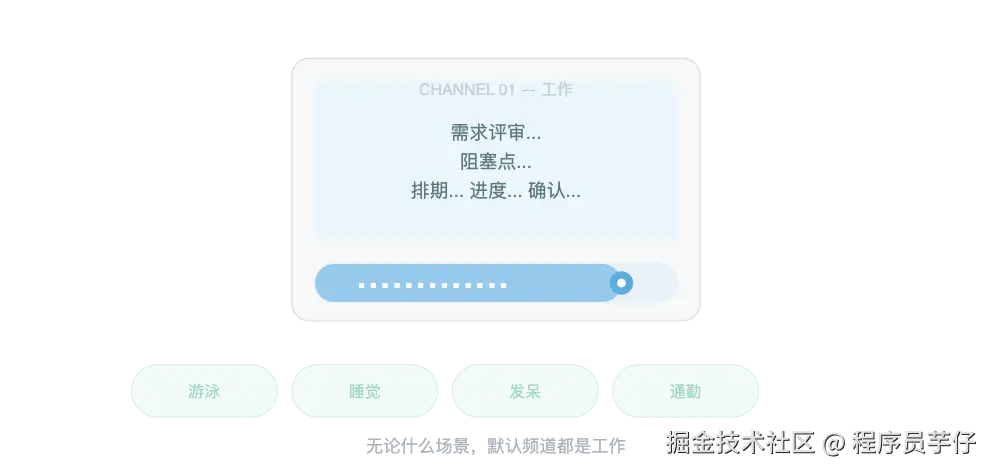 我后来意识到,这不是某个特定场景的问题。不是"游泳时容易想工作"或者"早上躺着容易想工作"的问题。而是——只要大脑没有被强制占用,它的默认频道就是工作。
