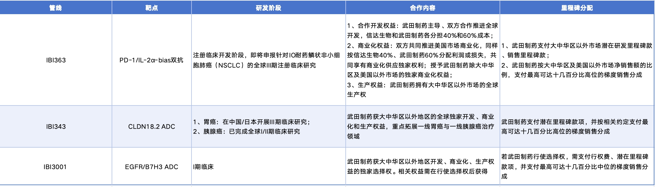 三款产品的具体合作内容示意(数据来源:信达生物公告)