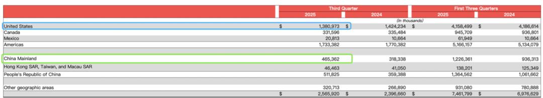 营收方面,中国大陆已经成长为仅次于美国的第二大市场。