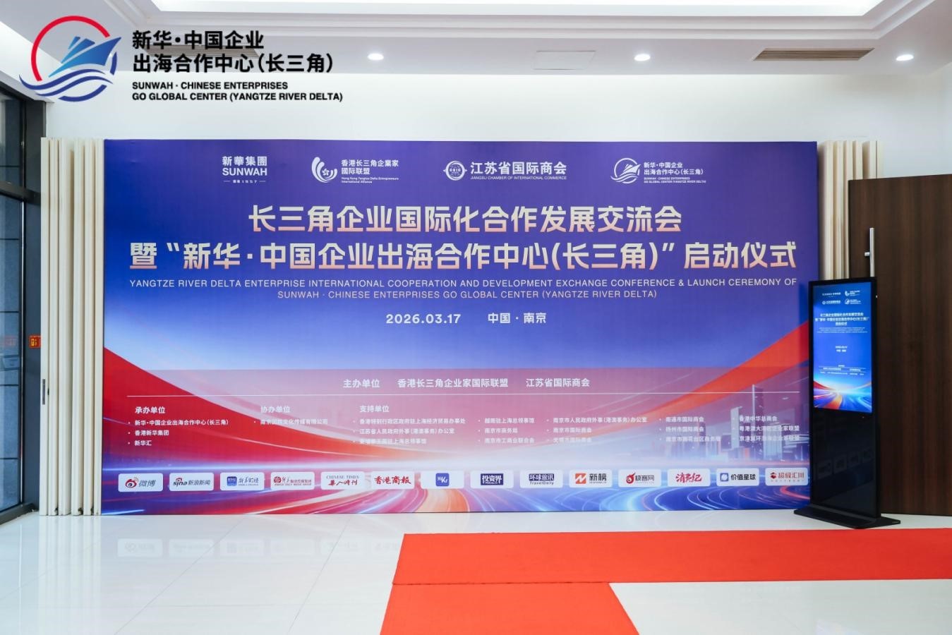 2026年3月17日,由香港长三角企业家国际联盟与江苏省国际商会联合主办、南京因胜文化传媒有限公司(简称“因胜传媒”)独家协办的“从长三角到全球:共筑企业出海新航线”为主题的长三角企业国际化合作发展交流会暨“新华·中国企业出海合作中心(长三角)”启动仪式在南京新华国际会议中心隆重举行。