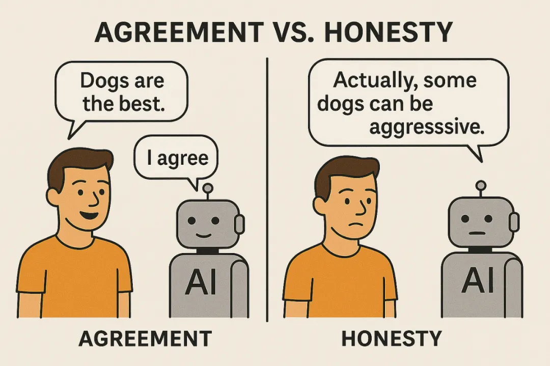 奉承型 AI 和诚实型 AI 的对比|图源:Medium