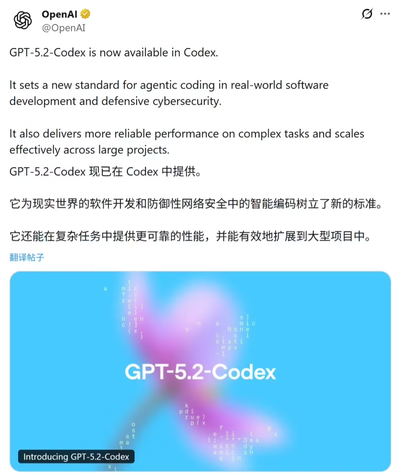 OpenAI 目前已向所有 ChatGPT 付费用户全量推送 GPT-5.2-Codex,涵盖所有 Codex 相关界面。针对 API 用户,OpenAI 计划在未来几周内逐步开放访问权限。(来源:IT 之家)