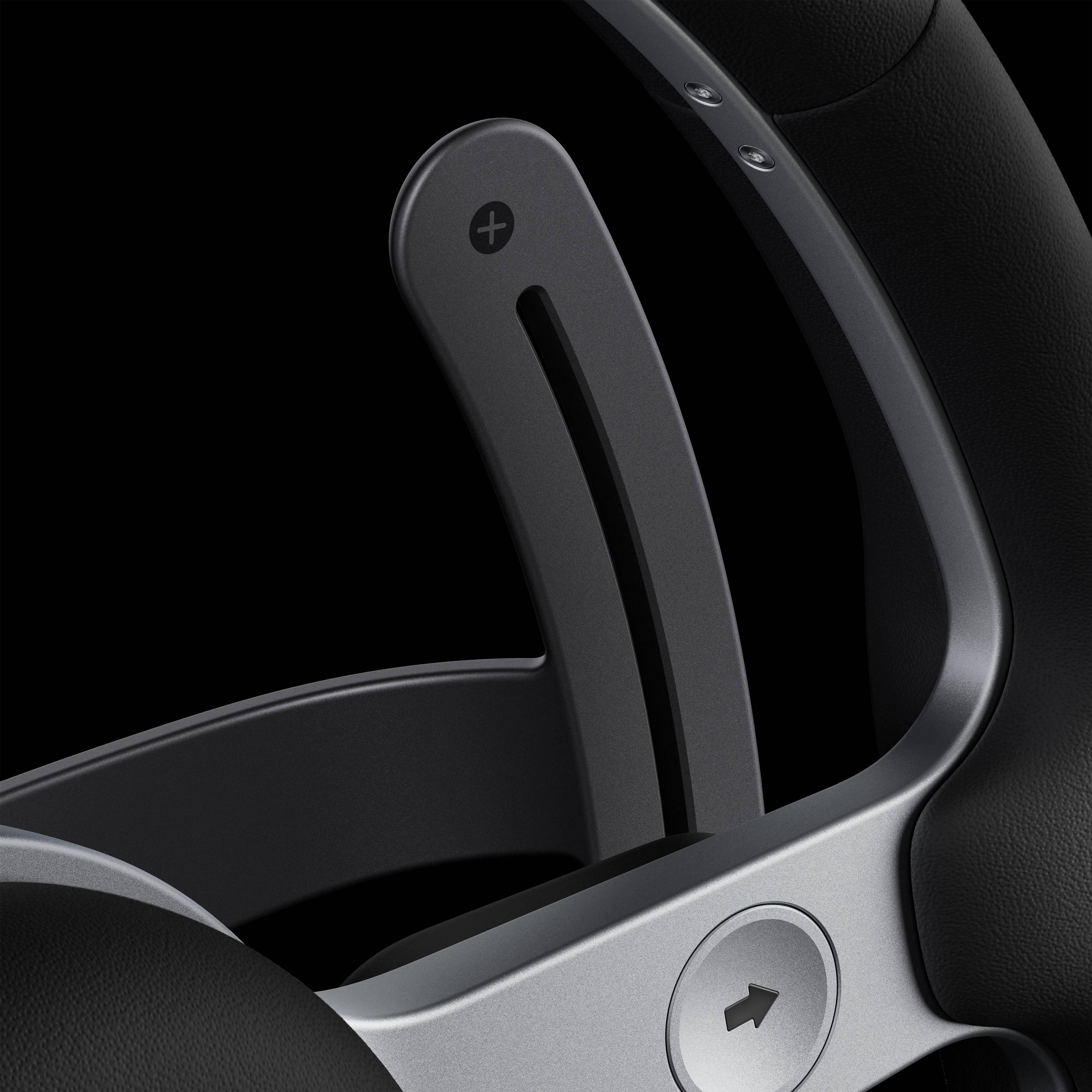 它不仅仅是一个转向工具,更像是一件悬浮在驾驶舱里的现代雕塑。整个方向盘由单块铝材精密加工而成,MacBook 的 Unibody 的一体成型工艺,在这里被运用得淋漓尽致。