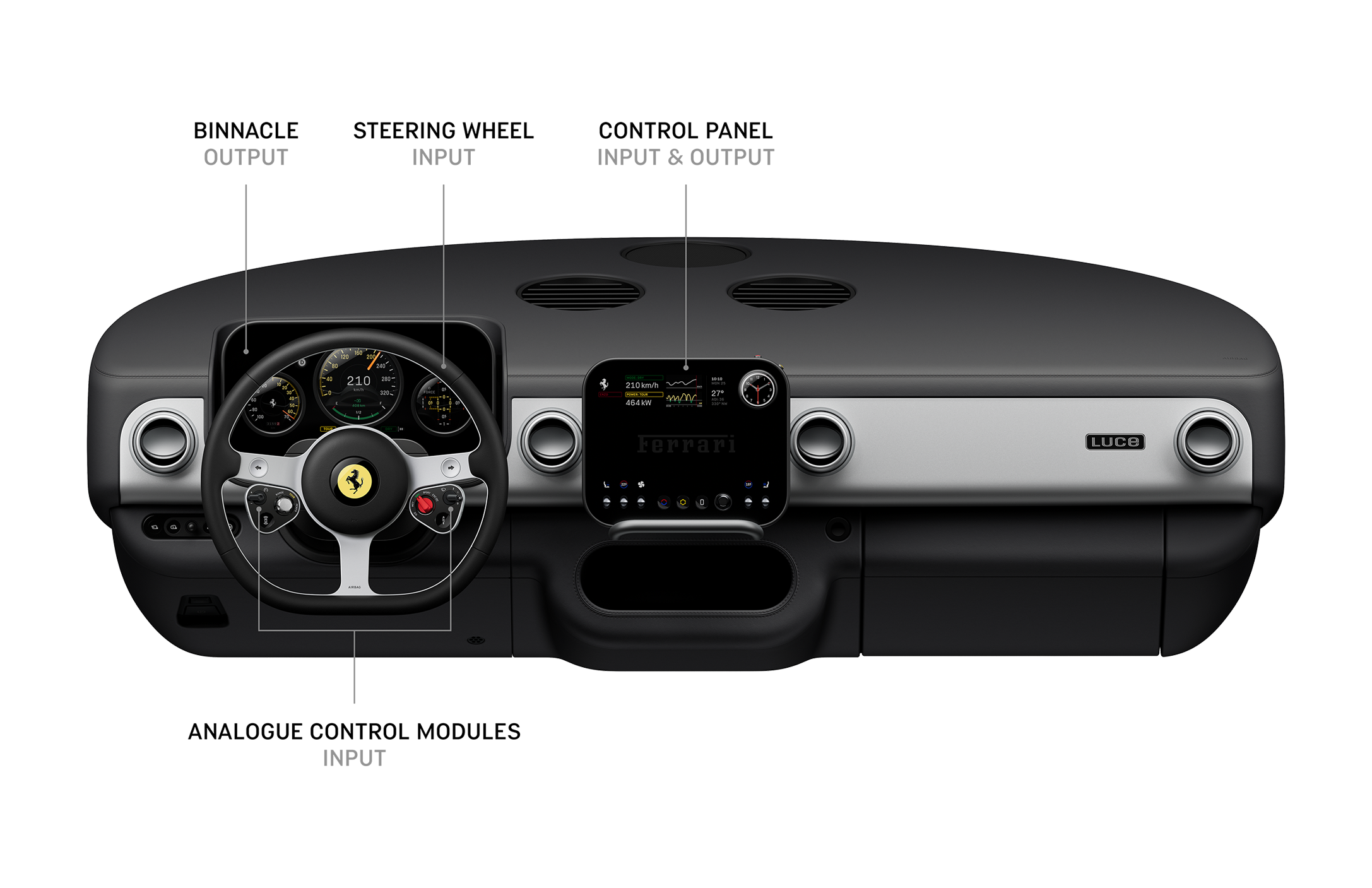 在这个金属骨架之上,法拉利植入了被称为「模拟控制模块」(Analogue Control Modules)的交互单元。