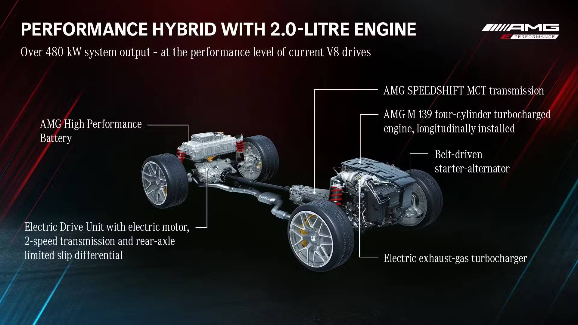 从纯粹的工程学角度来看,这台车确实称得上是一件精密复杂的工艺品。阿法尔特尔巴赫的工程师们将那台 2.0 升 M139l 发动机压榨到了极限,拥有 476 马力的最大功率,再加上后轴的一台 P3 电机,系统综合功率达到了 680 马力,峰值扭矩更是高达 1020N·m。