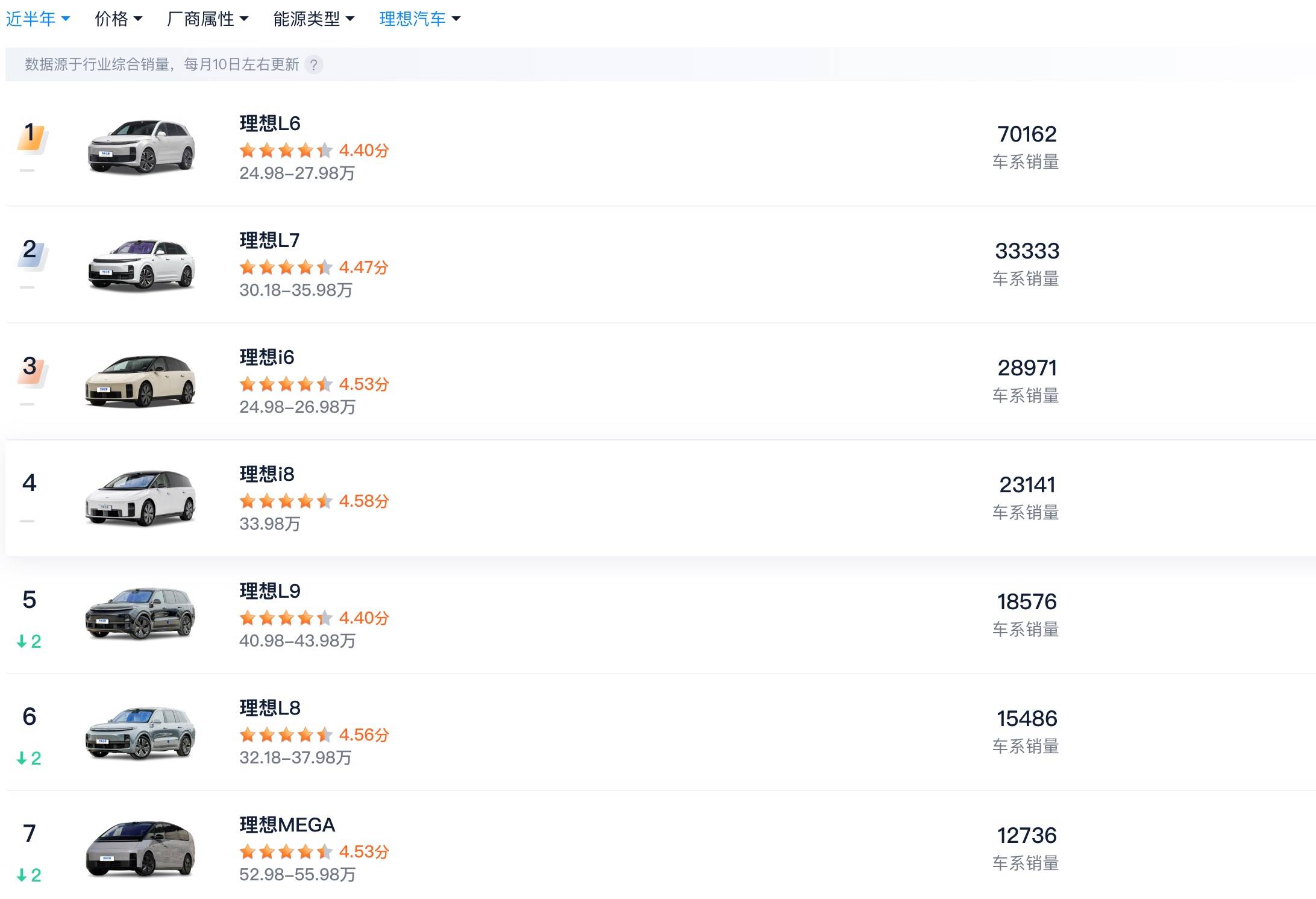 ▲ 理想各车型的近半年销量 数据来源:汽车之家