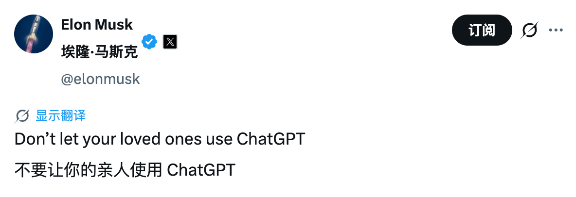 今天凌晨,马斯克转网友推文称,不要让你的亲人使用 ChatGPT。该推文显示, ChatGPT 已被关联 9 起与其使用相关的死亡事件,其中 5 起据称是因 ChatGPT 的互动导致自杀,包括青少年和成年人。