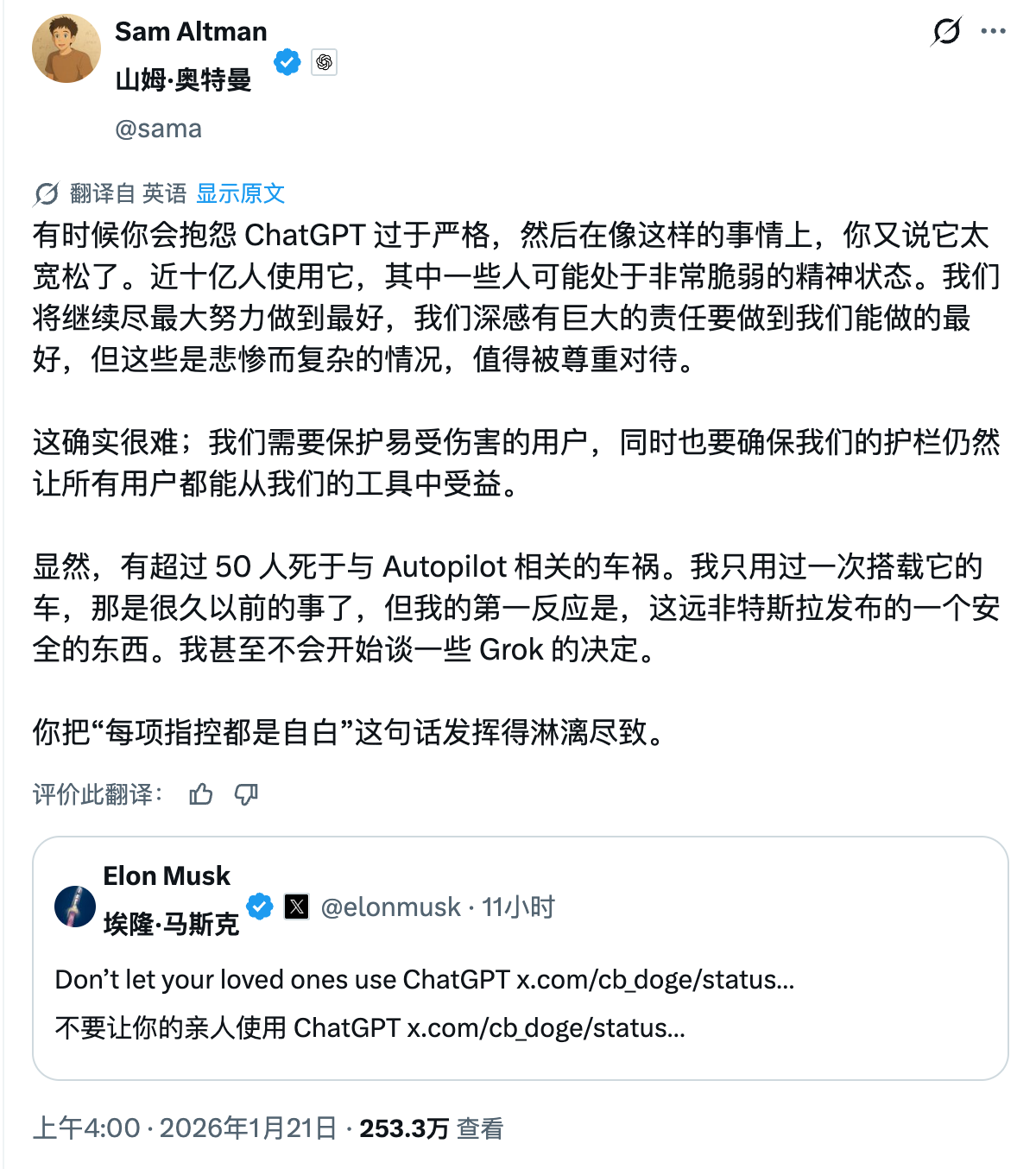 马斯克和奥特曼,又双叒叕撕起来了。