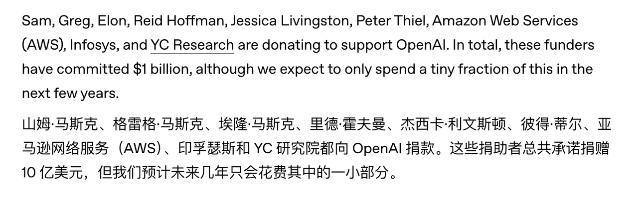 ▲ OpenAI 成立当天的官方博客🔗 https://openai.com/index/introducing-openai/