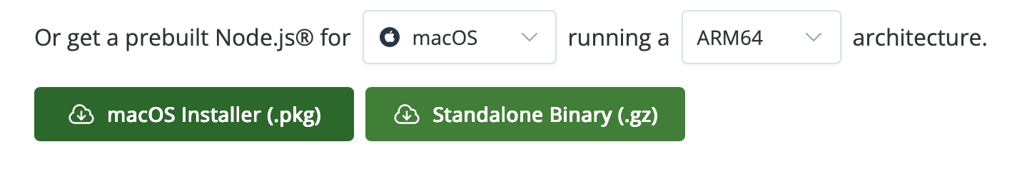 ▲ Nodejs 网页截图,使用默认下载即可,下载第一个(.pkg 文件/.msi 文件)