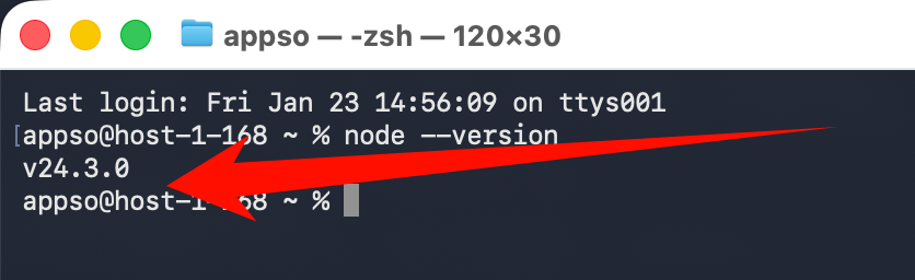 ▲安装成功,终端应该会显示版本号「v24.13.0」,具体版本可能会有所不同。