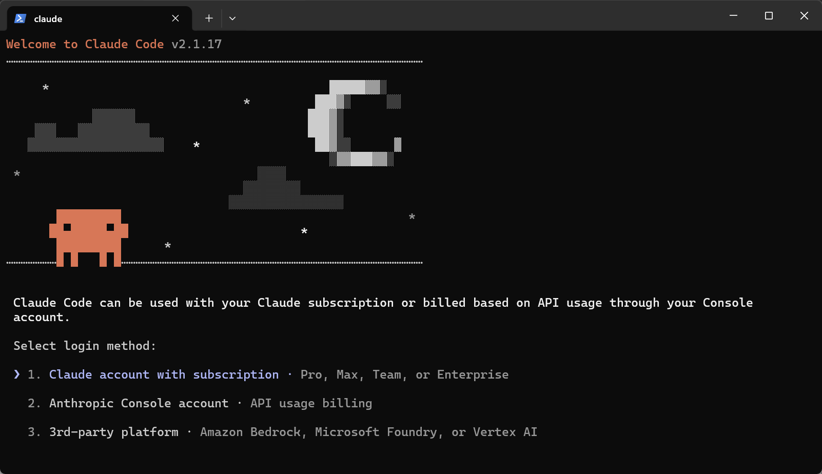 在终端里输入 claude,就正式进入了 Claude Code 的大门。