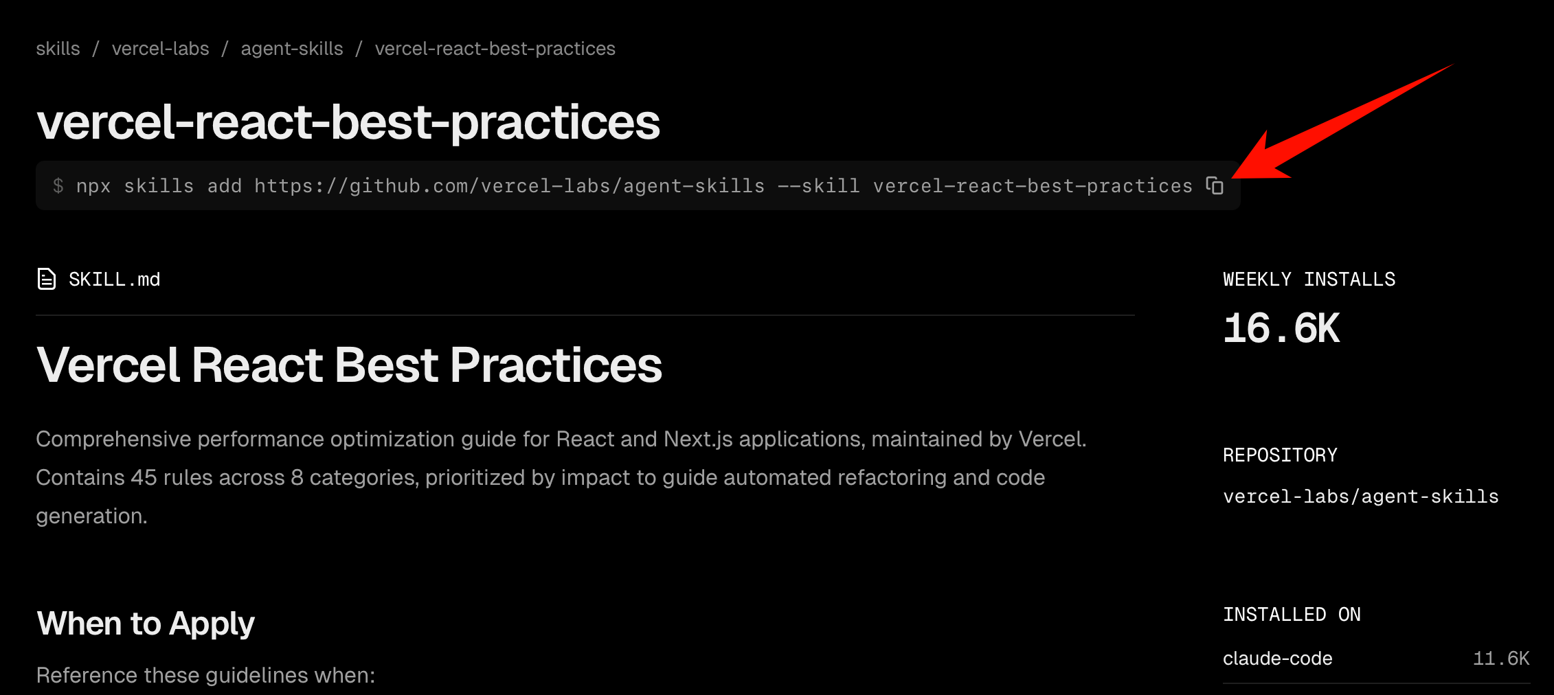- 开始使用 Claude Code,一直按 Enter 等待它解决问题,同时直接复制命令安装对应的 Skills,让 Skills 来处理我们的请求。