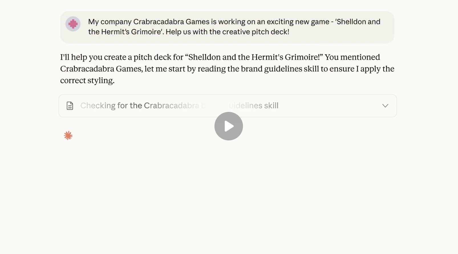 这个官方的演示视频,介绍了在 Claude 中,如何将 PowerPoint 技能,与自定义品牌指南技能结合使用,即视频中拖拽压缩包到 Skills 界面,然后再运用海报设计技能来创作概念图。