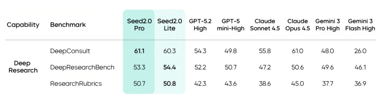 • 豆包 2.0 Pro:堆料狂魔,专攻深度推理和长链路任务,官方说法是全面对标 GPT-5.2 和 Gemini 3 Pro,