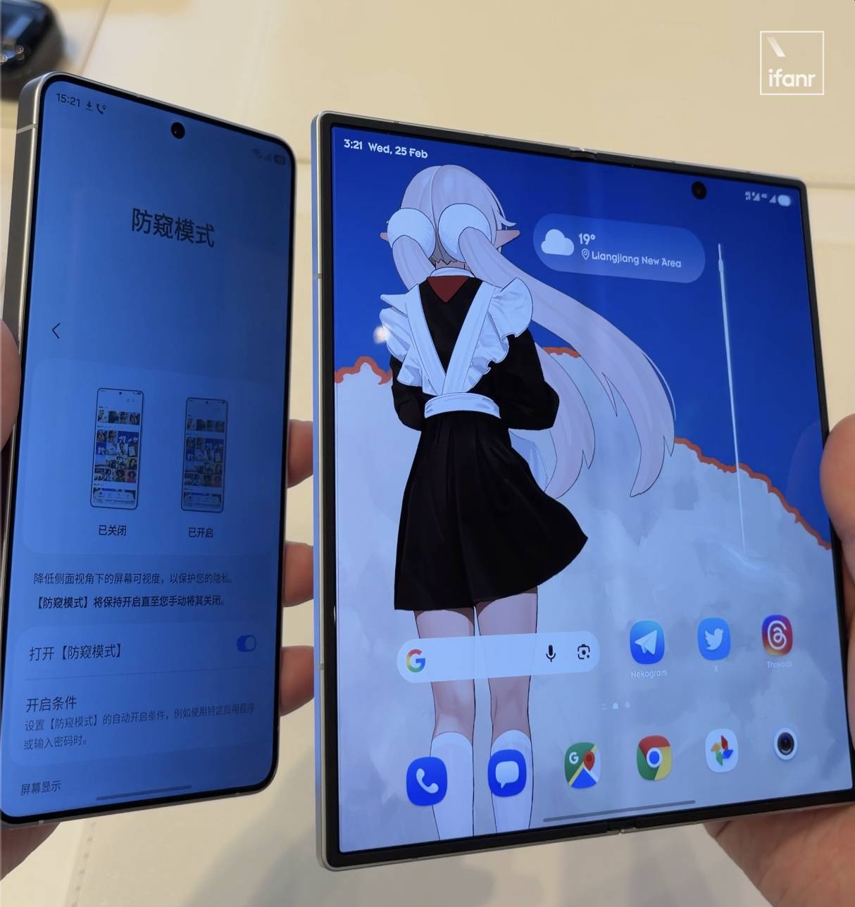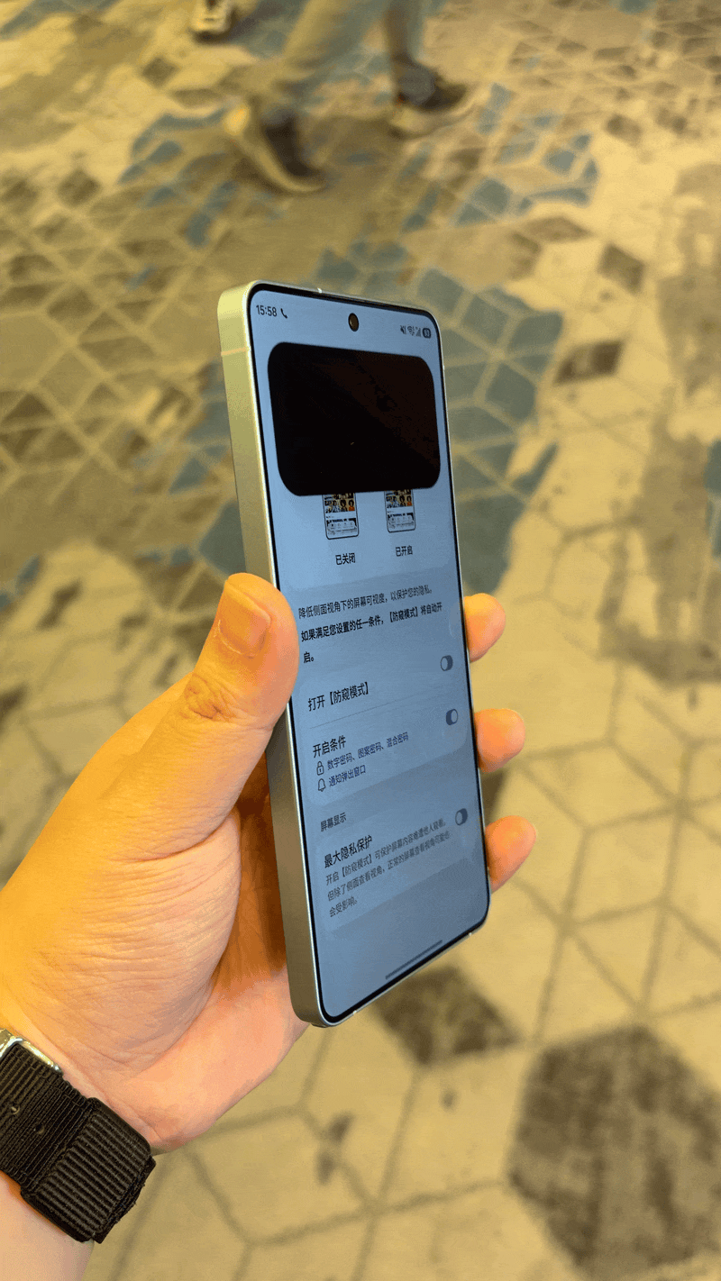 外观方面,新机整体设计趋于标准版/+版,采用双层台阶的跑道型镜头模组,另有两个独立摆放的镜组,正面采用直屏设计,提供隐私显示技术。
