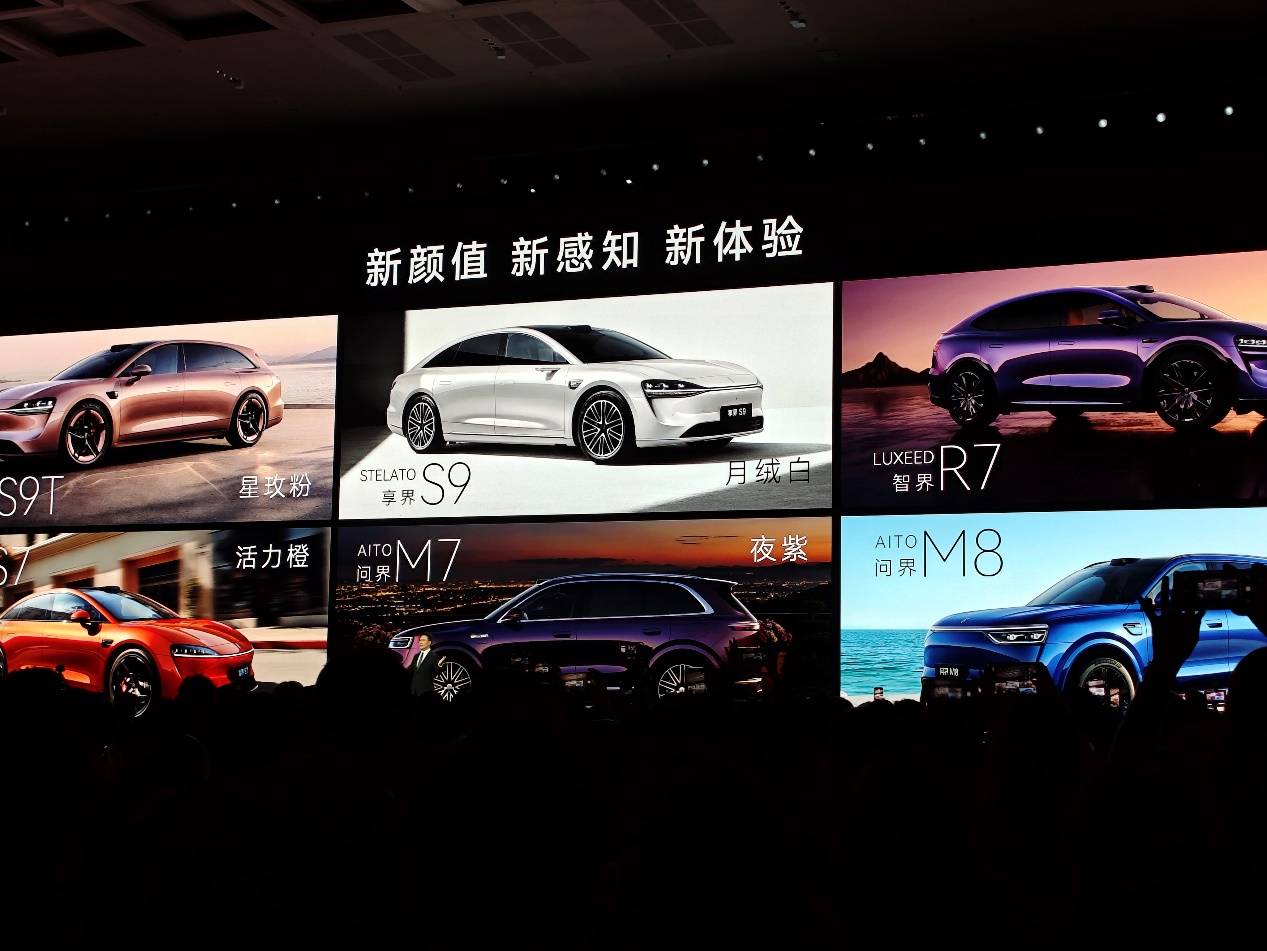 这场发布会的产品阵容,确实够硬。鸿蒙智行旗下“五界”齐上阵:问界M6首次亮相并开启预订,问界M7新增“夜紫”配色,问界M8新增瑞红、湛蓝双色,智界R7/S7推出活力橙车漆,享界S9新增月绒白、S9T新增星玫粉(连轮毂都涂成同色),尚界Z7/Z7T首次开启预售。9款车,7种新配色,鸿蒙智行在2026年春季的这场“饱和式覆盖”,覆盖了15万到100万的价格区间。