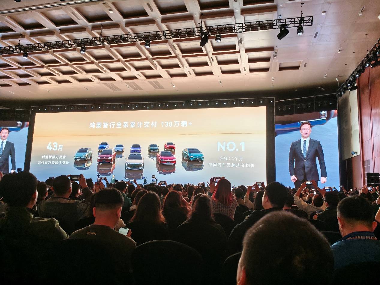 华为春季全场景发布会上,华为终端CEO 何刚公布了鸿蒙智行的一组数据:全系累计交付突破130万辆,仅用43个月创下新势力最快百万交付纪录,连续14个月位居中国汽车品牌成交均价第一。