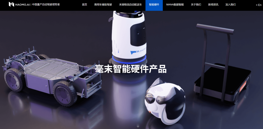 至于智能硬件方面,毫末智行官网显示,除了前文提到的低速无人通用线控底盘“小魔盘”外,还有自动跟随载物出行机器人“小汤圆”、智能清扫机器人“小魔净”两款机器人产品。