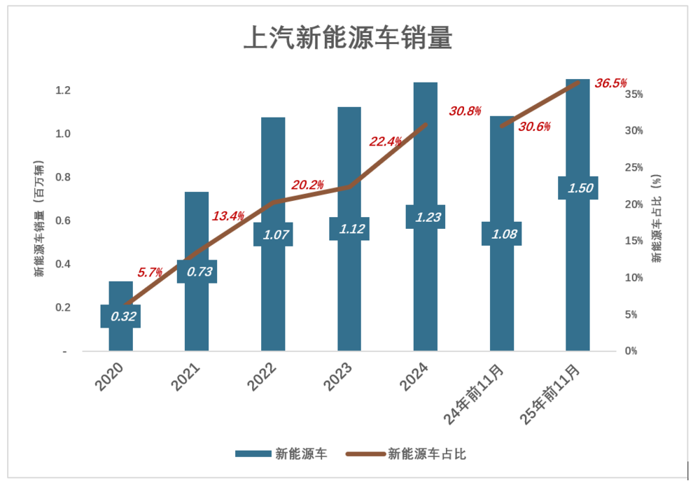 2025年1~11月,上汽销量同比增长16.4%,同比增长58万辆。