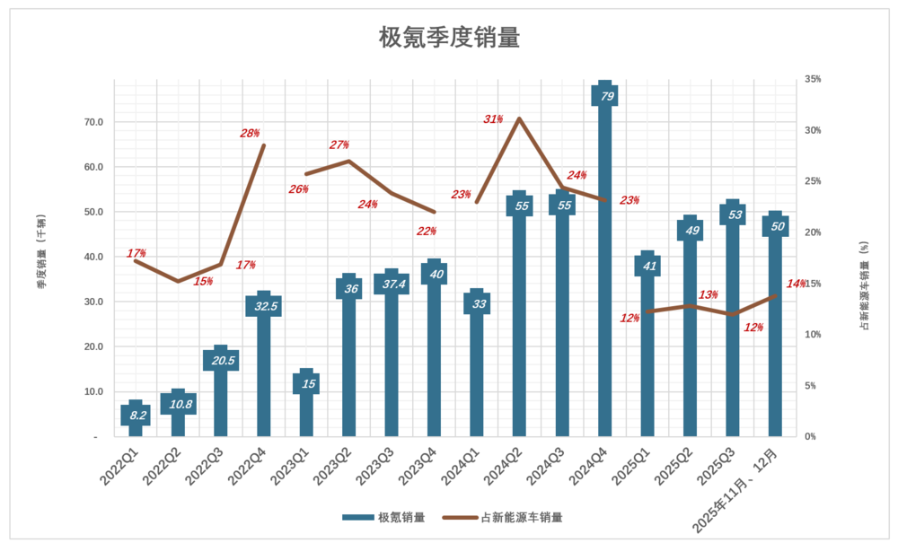 2022年H2,极氪明显发力,Q4交付达3.25万辆、占吉利新能源车总销量的28%;