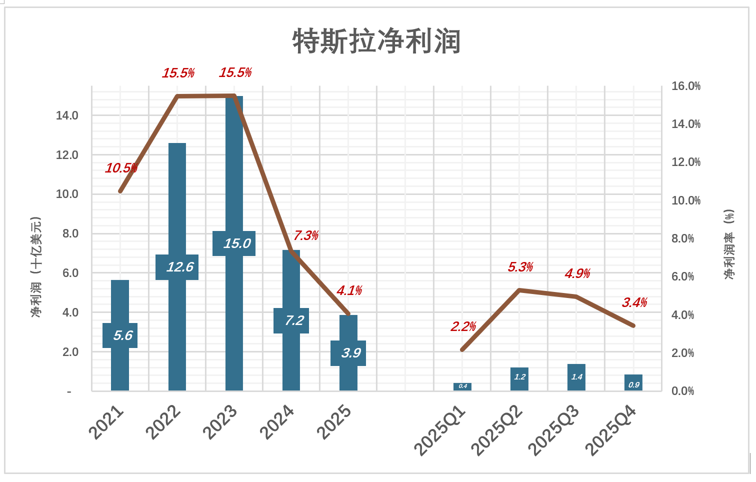 2025年特斯拉净利润仅相当于2023年的25.7%。